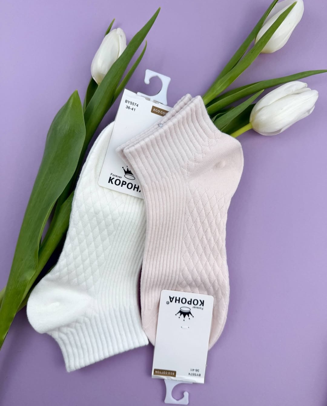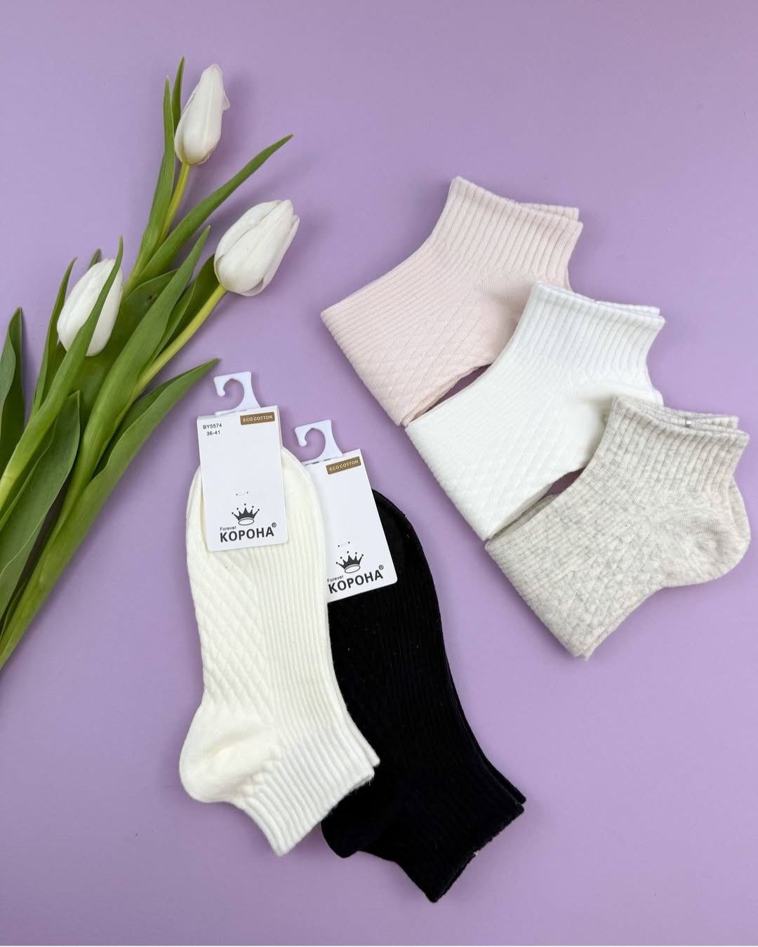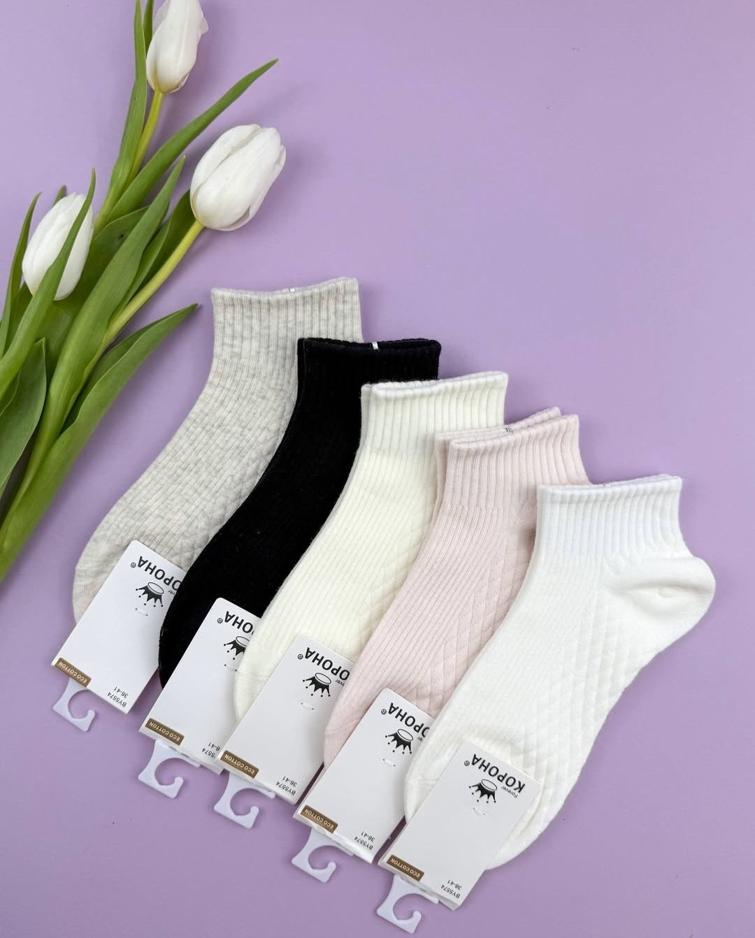 - Ніжна палітра кольорів: У наборі 5 пар у світлих, літніх відтінках, які ідеально пасують до світлого взуття, кросівок та легкого одягу.