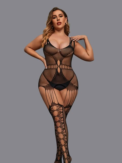 Еротичний бодістокінг в сіточку для більших об’ємів (L-3XL)
