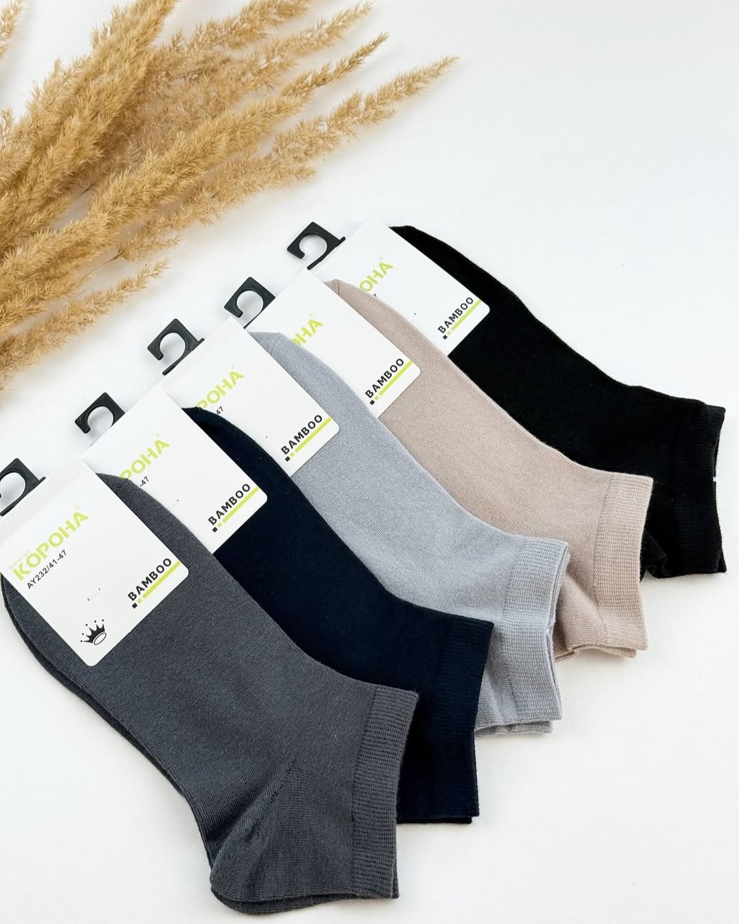 Шукаєте ідеальні шкарпетки, які поєднують преміальну якість, максимальний комфорт та гігієну? Наші чоловічі шкарпетки з натурального бамбукового волокна — це вибір чоловіків, які цінують впевненість у кожному кроці. Завдяки інноваційному парфумованому ефекту та природним властивостям бамбука, вони гарантують відчуття абсолютної свіжості з самого ранку до пізнього вечора.
