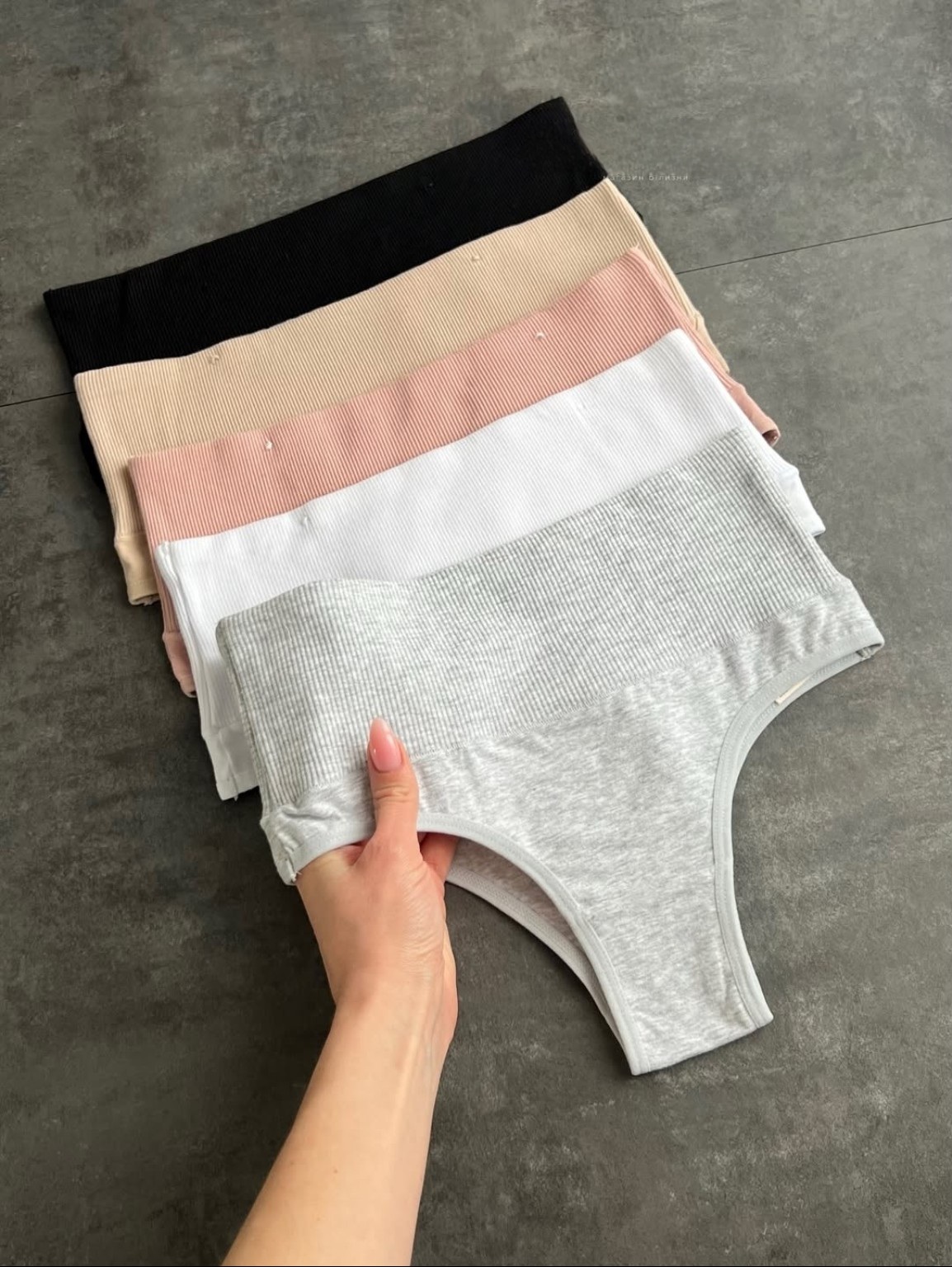 - Стильний середній рубчик: Трендова фактура тканини додає еластичності, завдяки чому білизна ідеально сідає по фігурі, а крій “бразиліана” вигідно підкреслює сідниці.