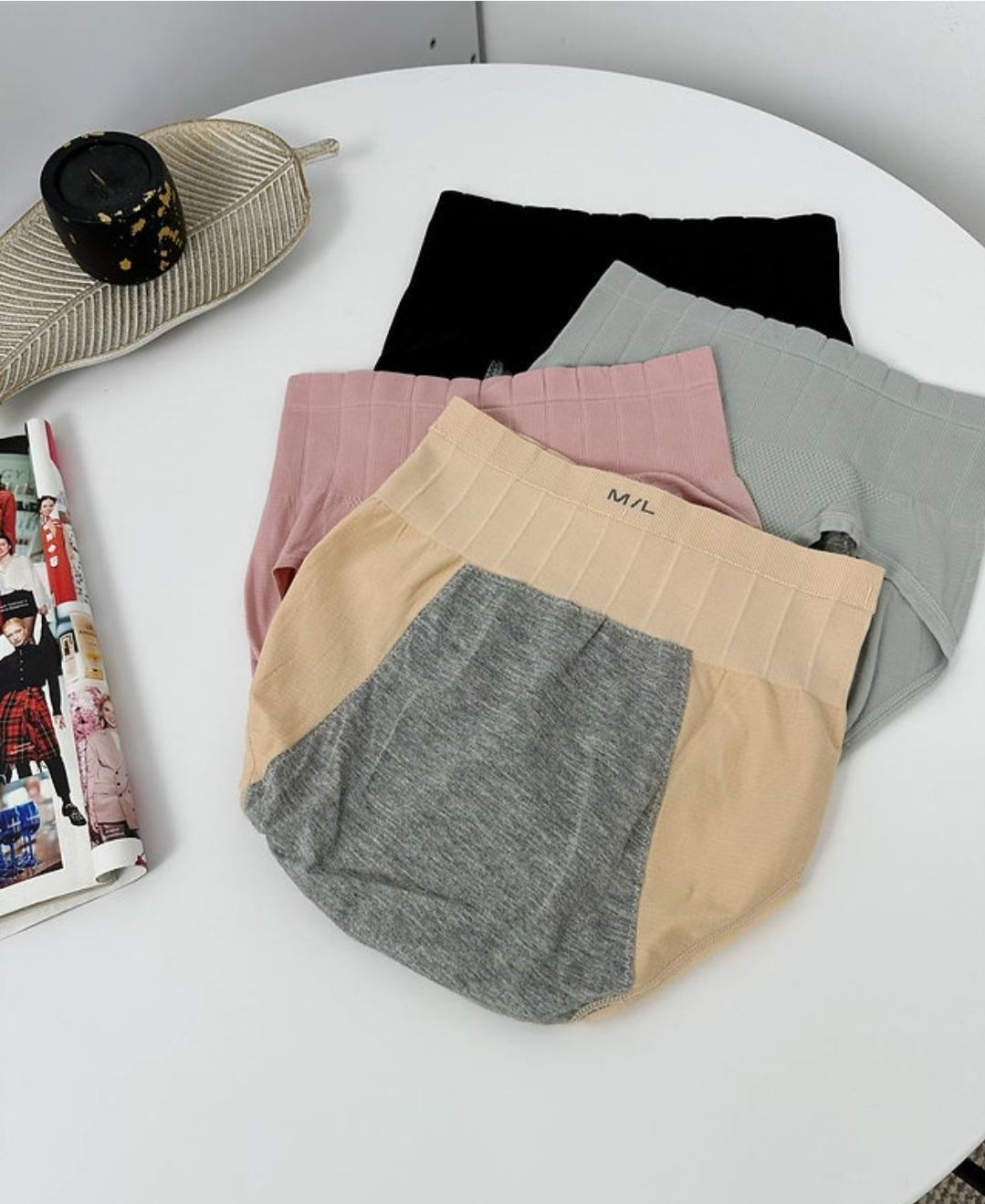 - Ефект корекції фігури: Завдяки високій посадці (висота виробу 29 см) та щільному еластичному матеріалу, трусики ефективно підтягують животик, згладжують боки та підкреслюють талію, формуючи гарний силует.